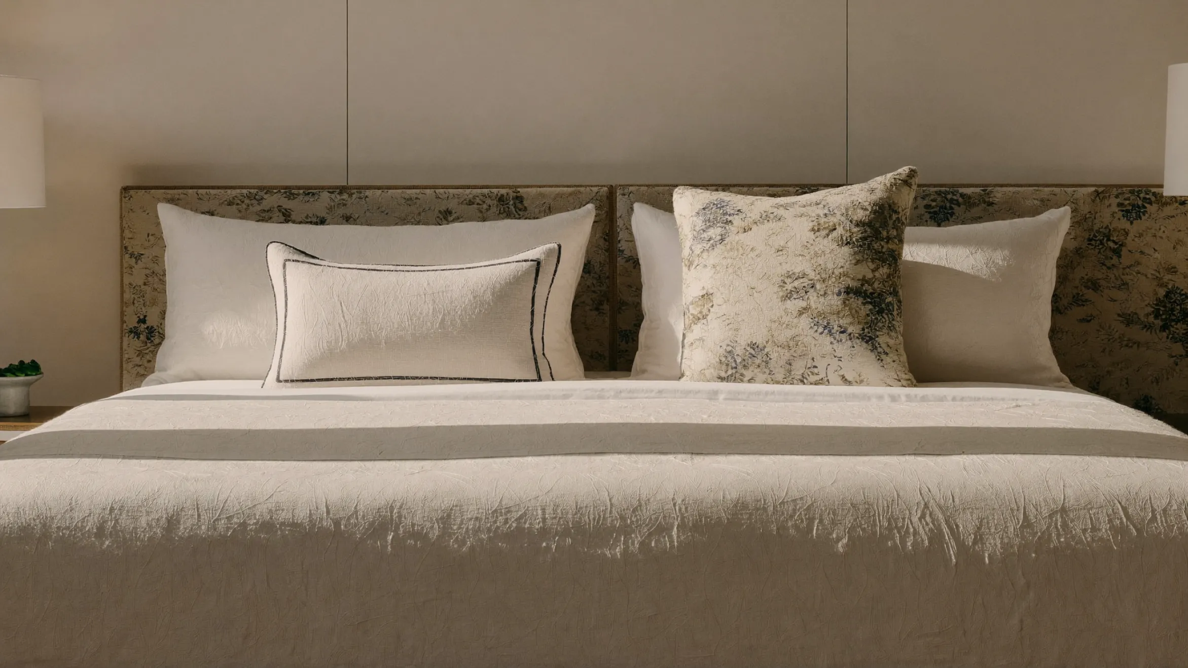 2. Пассивный декор и акценты: текстильные панели, декоративные подушки, пуфы, банкетки — это идеальные площадки для демонстрации коллекционного текстиля. В этих элементах интерьера ткань работает как предмет искусства, смещая акцент с реализации функциональных задач.