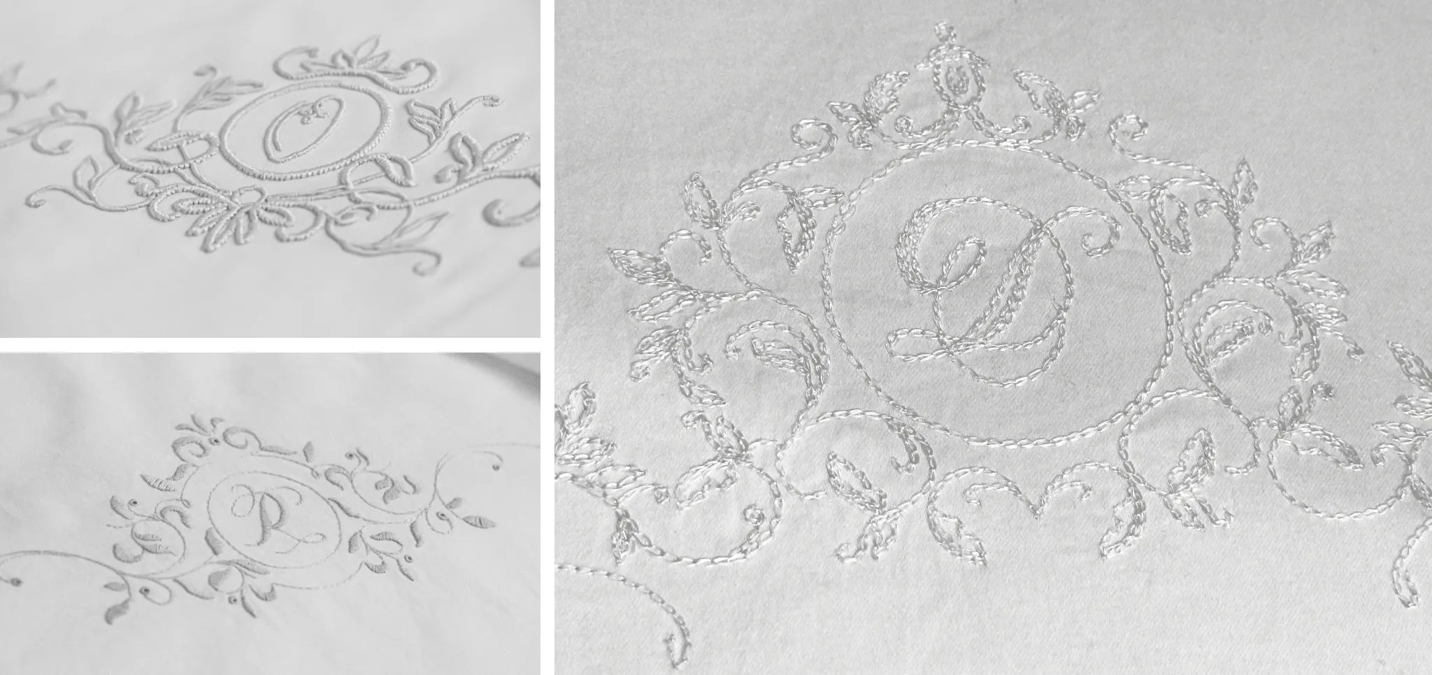 Вышивка Decortier с использованием шёлковых нитей. Стоимость вышивки 25х10 см: от 16 000 ₽ (зависит от площади заполнения и техники).