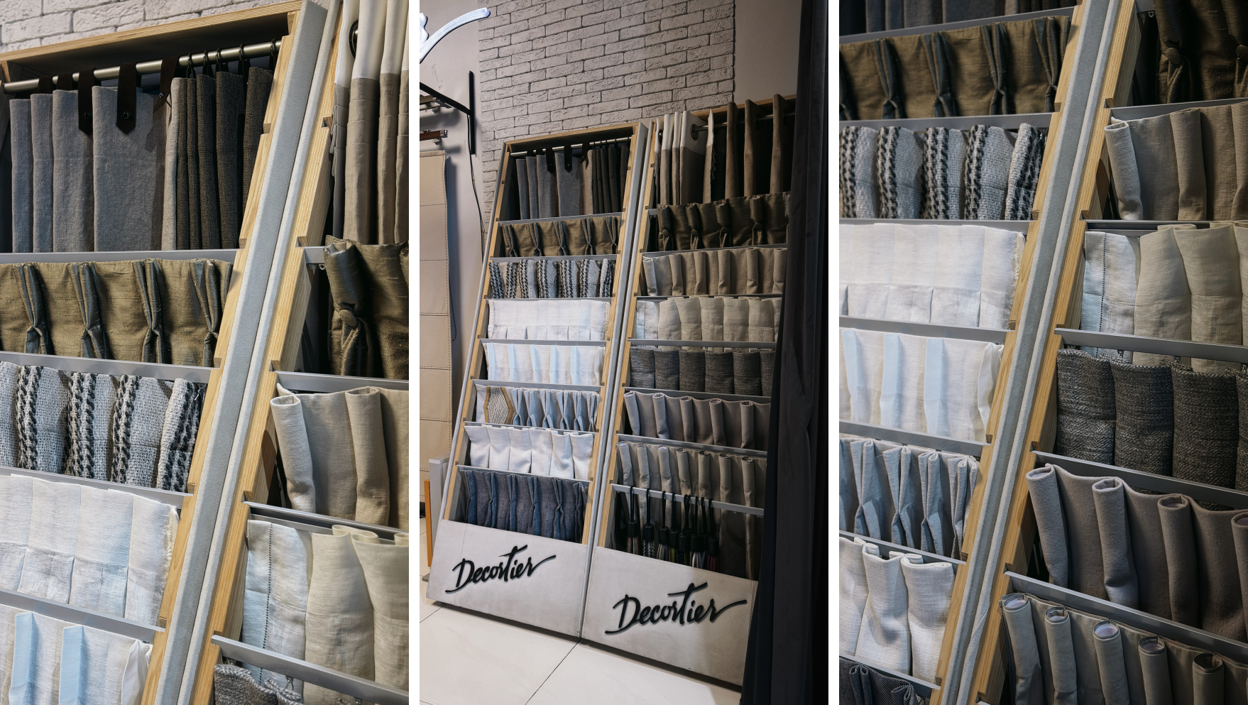 Образцы изделий с разными типами складок в шоуруме Decortier