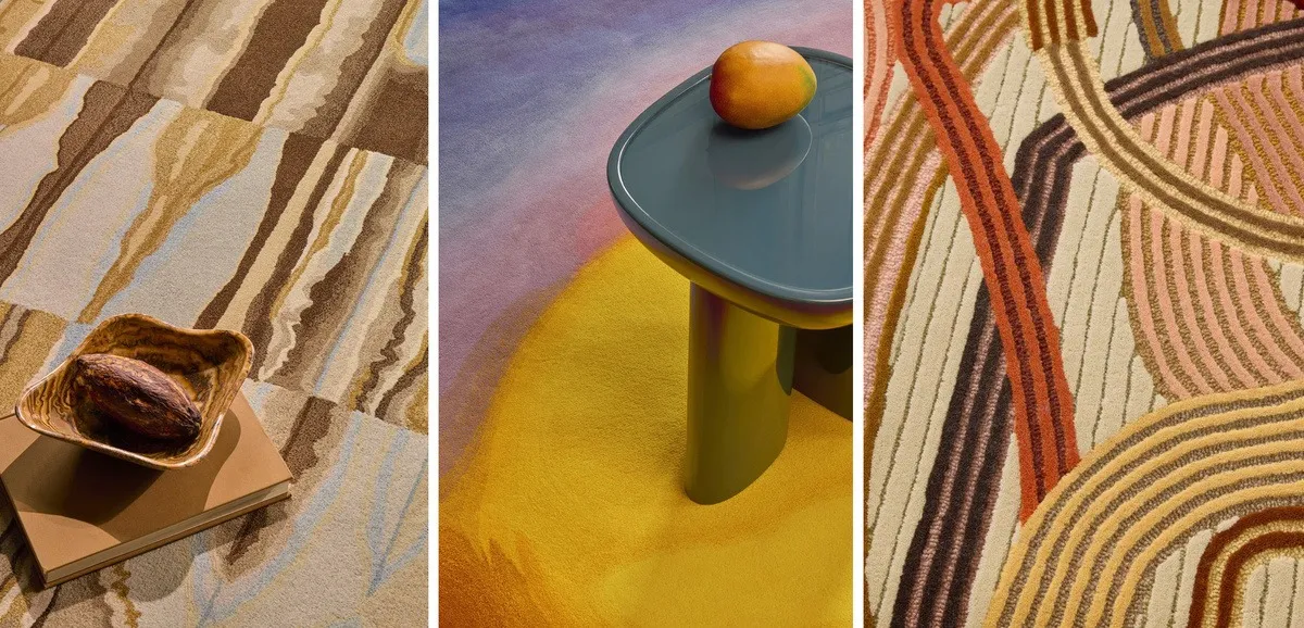 Ковровые покрытия поддерживают ту же эстетическую систему. В них наиболее отчётливо ощущается ритм пустыни — через ворс, через плавные переходы цвета и мягкую геометрию. Ковровая линия коллекции Deserts построена на нескольких производственных технологиях: ручной тафтинг (hand-tufted), традиционное узелковое ткачество (traditional knotted techniques) и машинная ткацкая техника Axminster. Такое разнообразие техник и возможностей позволяет создать изделия под любые декоративные и эксплуатационные условия.