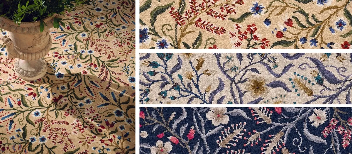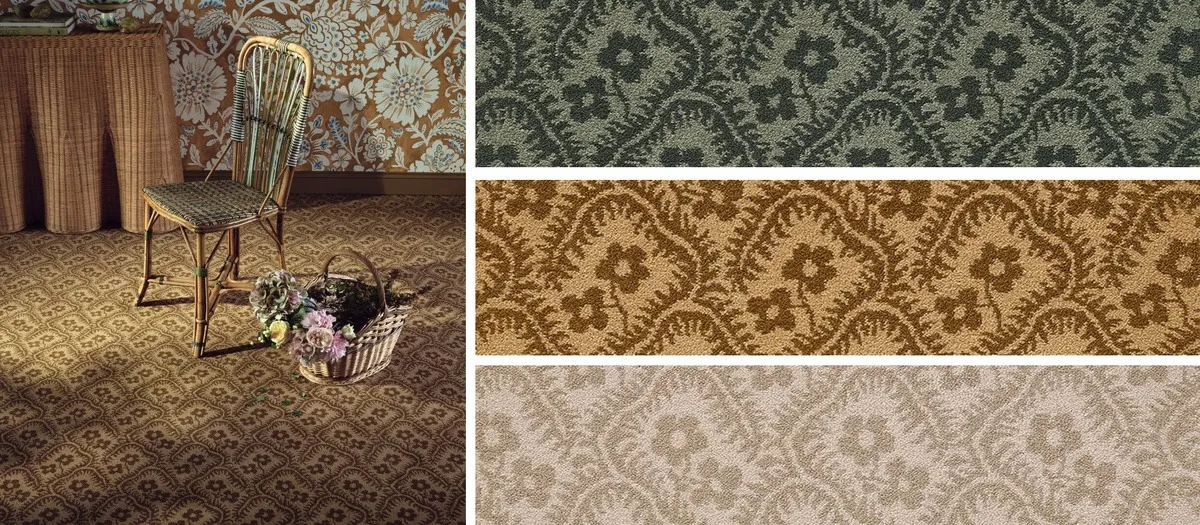 Amarante — это пышная, цветущая растительность. Доступен в трёх цветах в варианте Axminster Fast-track: многоцветном и ярком. Это широкоформатный материал, особенно подходящий для лестниц и мест с интенсивной эксплуатацией.