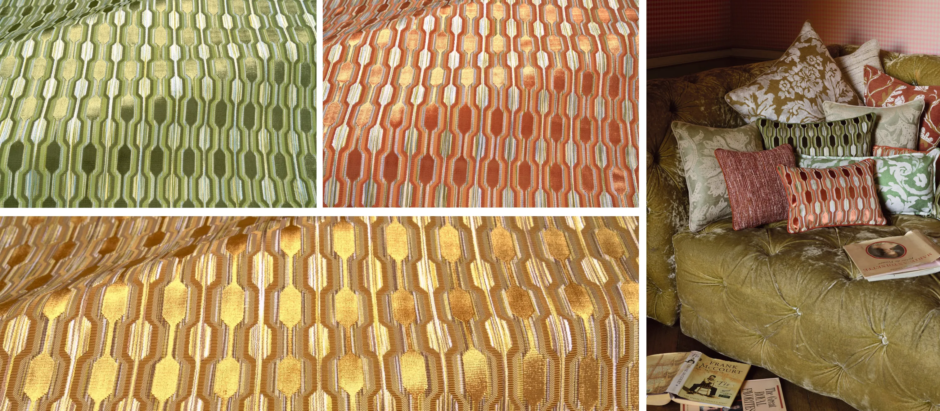 Meudon — великолепный бархат с многоцветным шелковистым ворсом, напоминающий геометрию французских садов. Особенно хорошо подойдёт для обивки и использования в качестве сиденья.