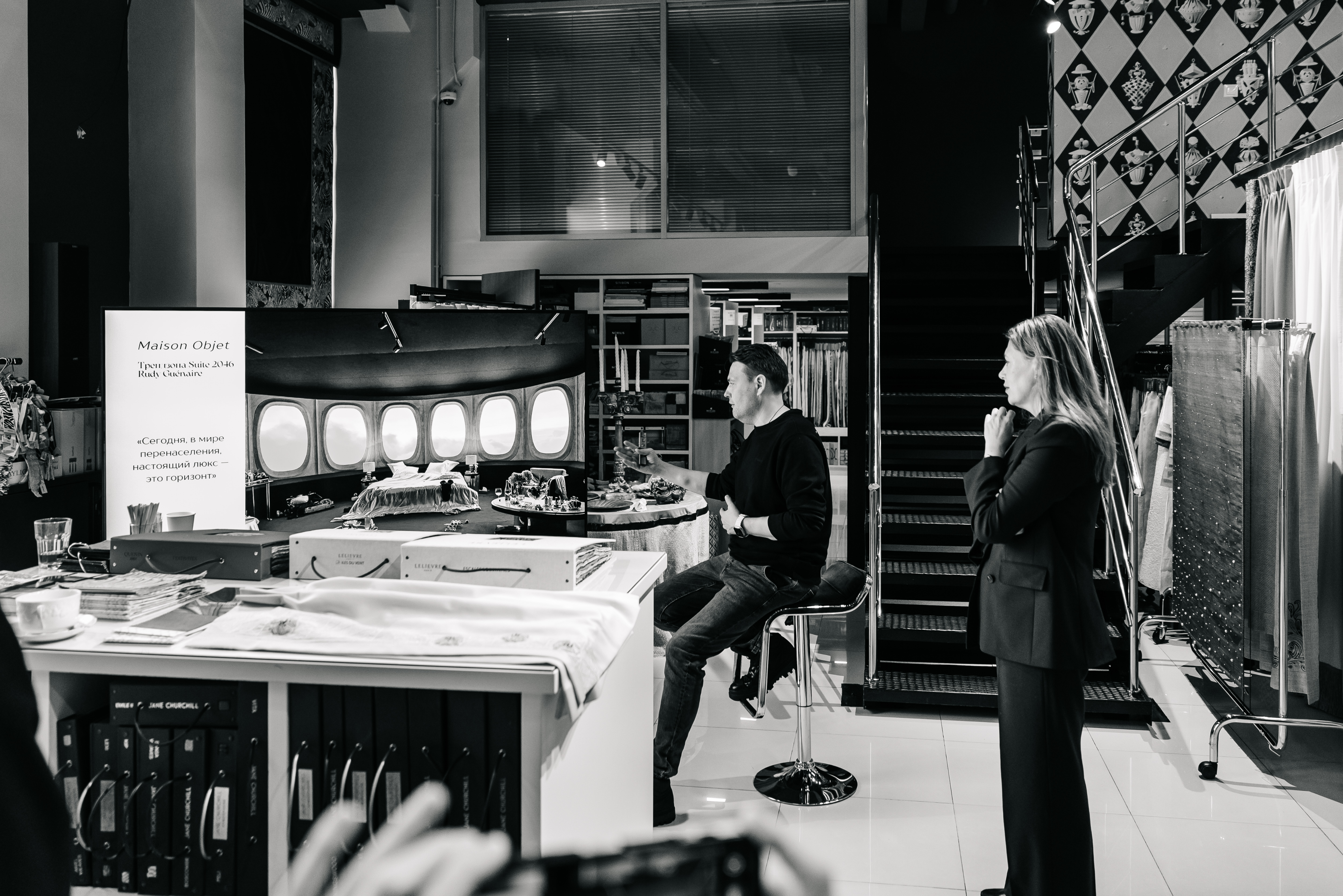 Вместе с приглашёнными дизайнерами и архитекторами определяли тенденции, анализируя январские события в Париже, и первыми знакомили их с самыми последними и новыми релизами Lelièvre, Pierre Frey, Houlès и Holland & Sherry, привезёнными прямиком из Франции в начале года.