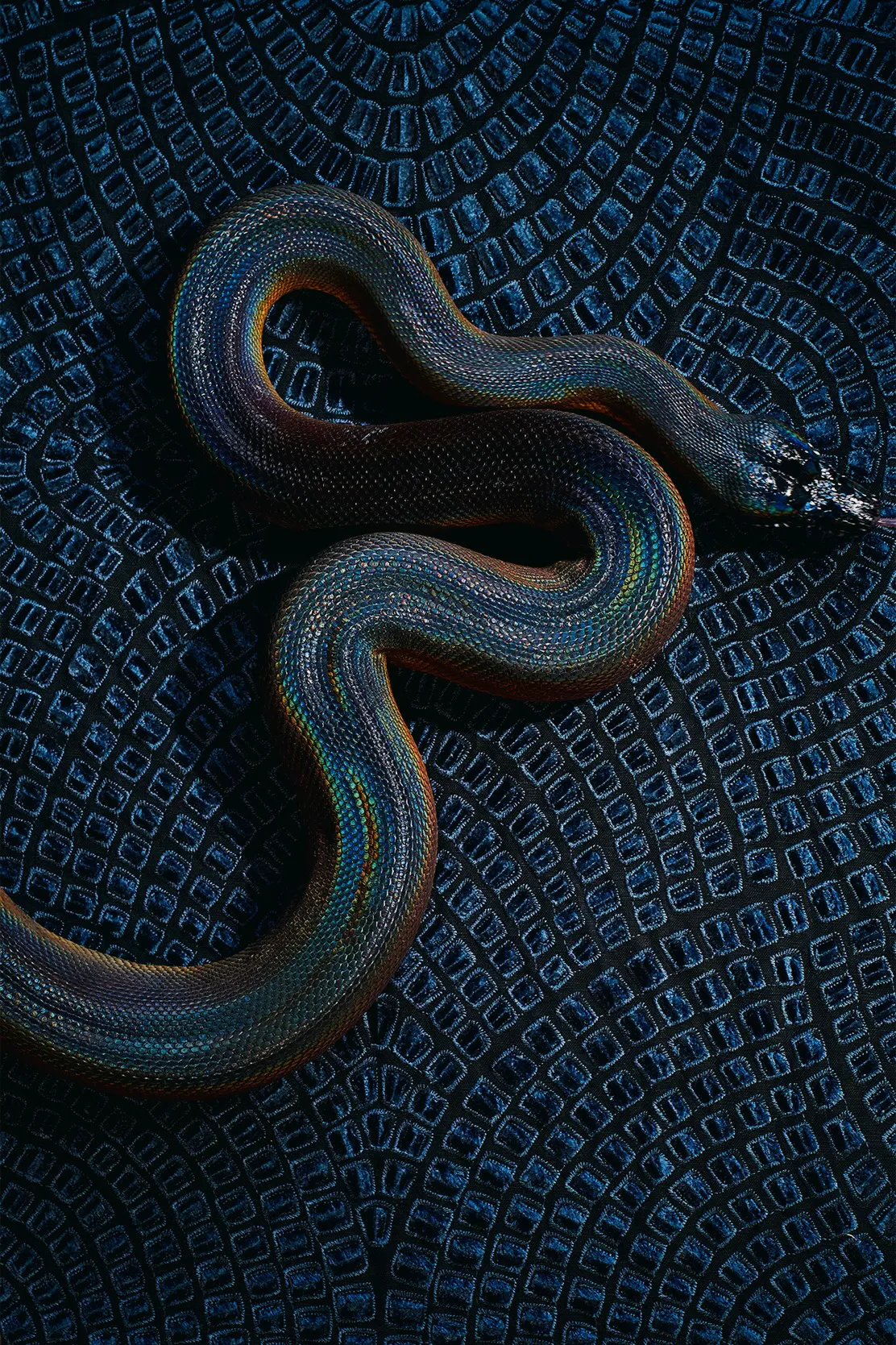 Изображения змеи и орнаменты с ними существовали с палеолитических времён, а в эпоху модерна они распространились повсеместно. Извивы стеблей и листьев на бумаге, на ткани, в камне и в металле создают впечатление непрерывного, скользящего змеиного движения. Как мерцающий узор на богатой ткани, змея вечно кружит вокруг человека, и почти невозможно определить, повторяем мы за Эдгаром По, где начинается и заканчивается её царство. Тем более, когда на дворе год змеи.