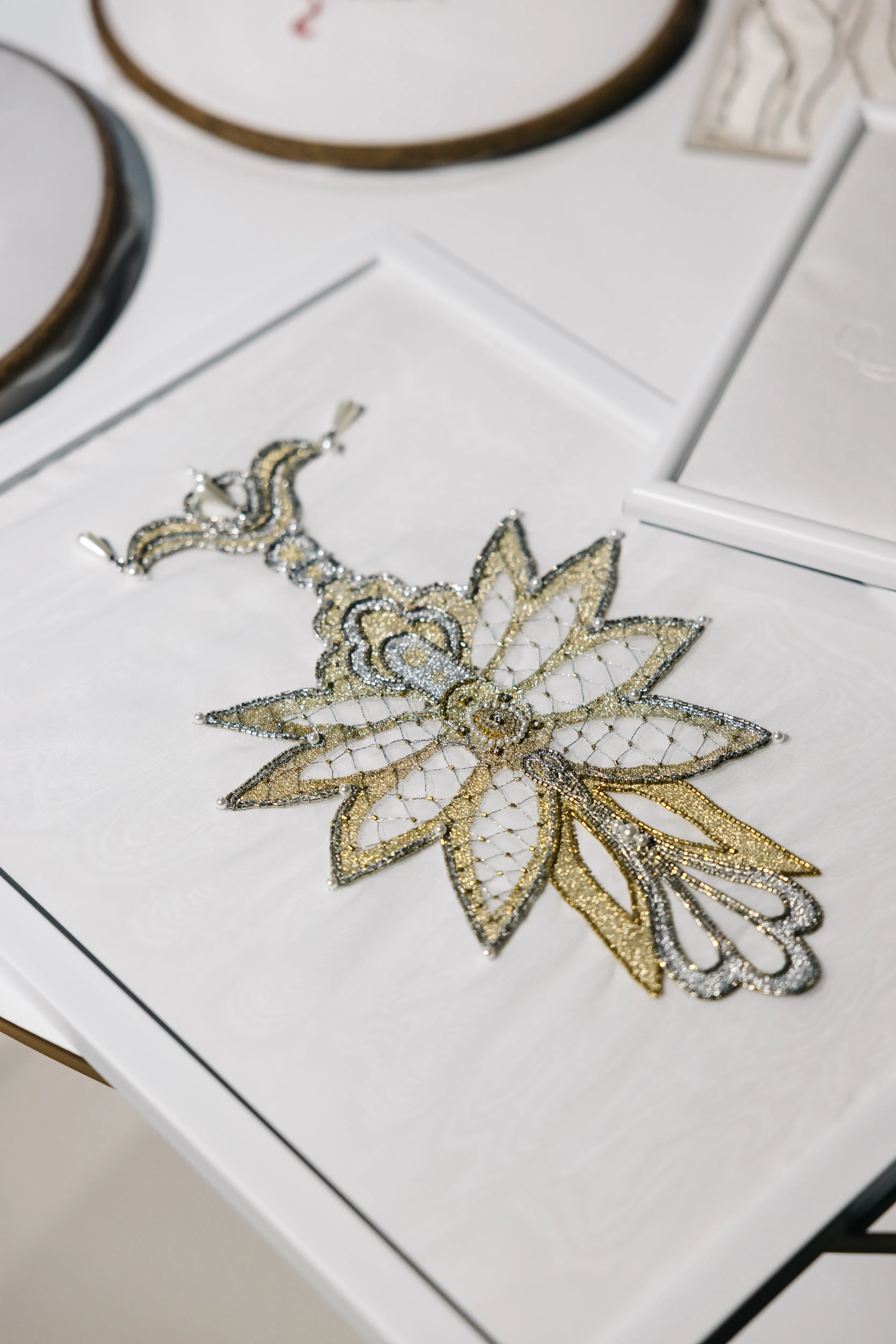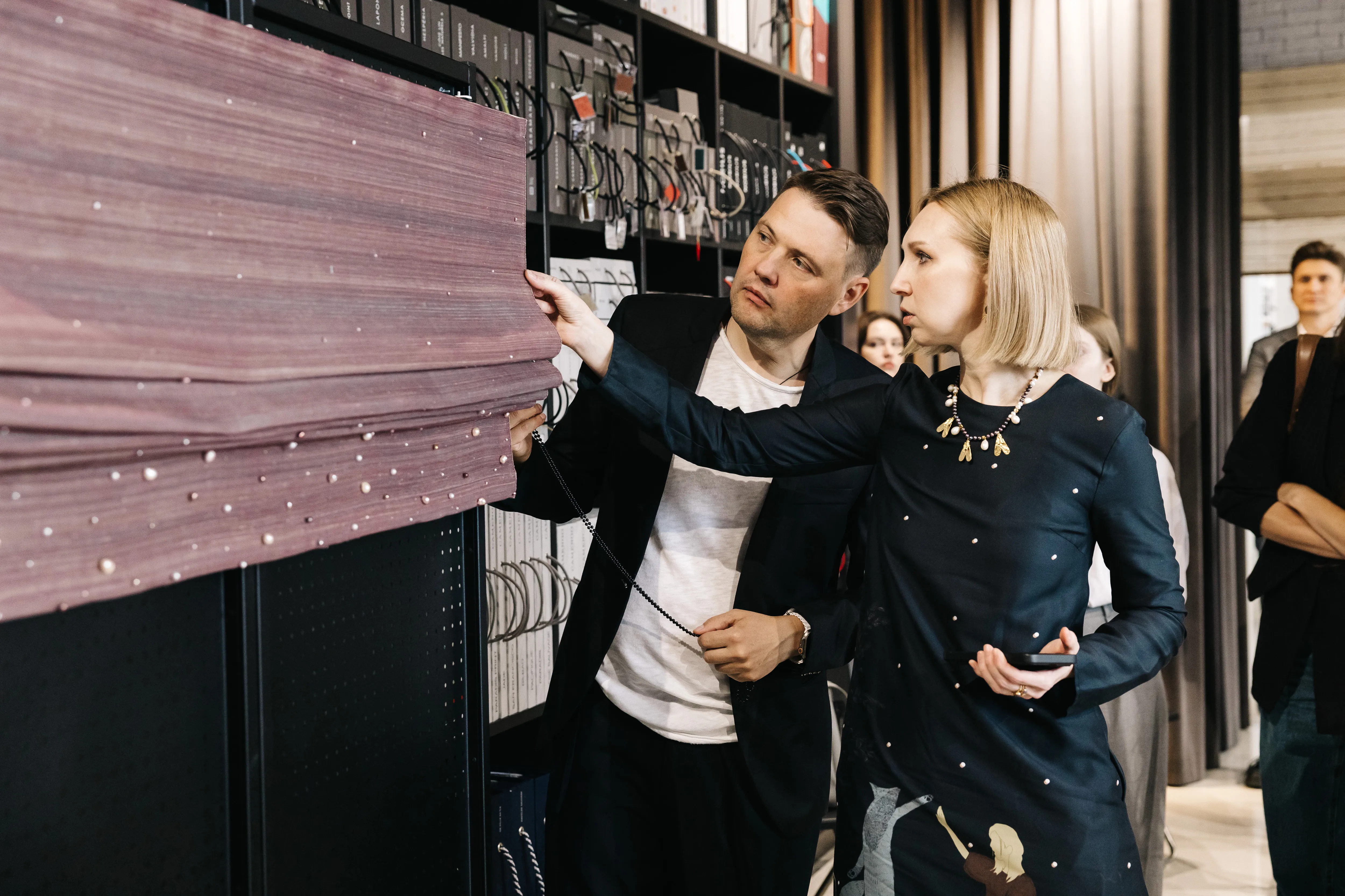 В конце сентября в нашем шоуруме состоялось событие, где творческая энергия и профессиональные знания объединились в диалоге о будущем дизайн-проектов. Мы показали гостям, как тонкая ручная работа может превратить изделия в уникальное художественное полотно, поговорили о различных техниках и способах реализации в изделиях, продемонстрировав впечатляющие образцы, созданные нашими мастерицами.