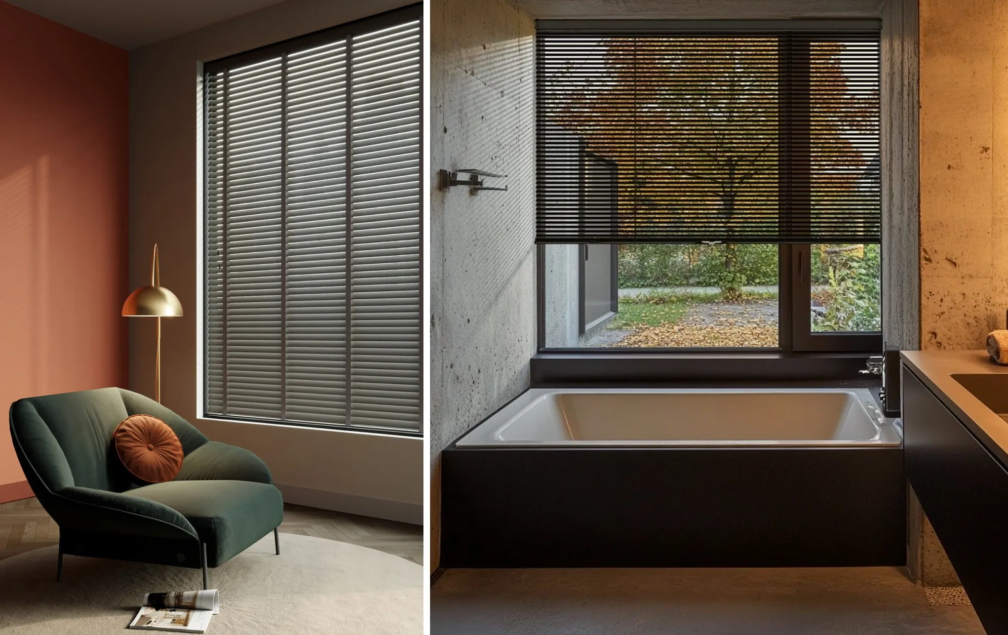 Например, в линейке Luxaflex представлены горизонтальные алюминиевые ламели, деревянные ламели из сертифицированной древесины (FSC), а также комбинированные системы «алюминий-дерево». Клиенту доступна палитра из сотен оттенков и фактур: от натурального дуба и тика до высокоглянцевых металликов. Для MHZ характерна немецкая сборка и тщательная инженерия: алюминиевые жалюзи, рулонные системы и деревянные ламели с тонкой индивидуальной окраской, текстурой и скрытым механизмом.